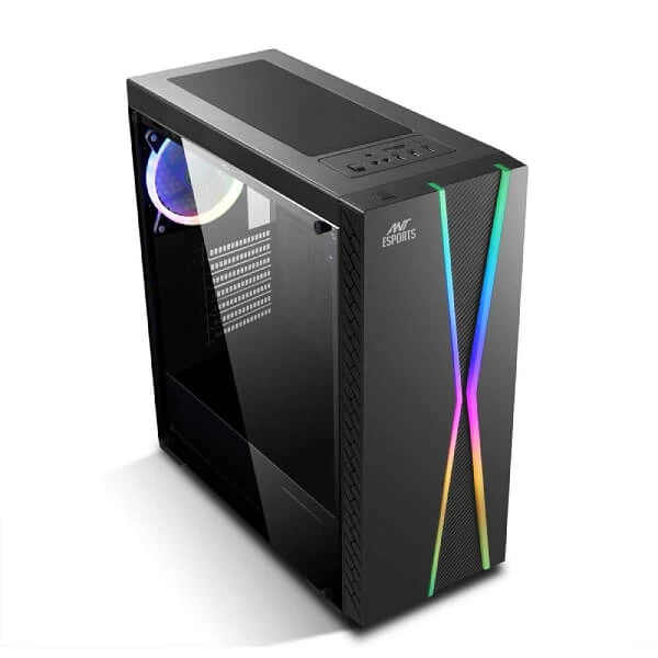 The Ant Esports ICE 200TG is a mid-tower cabinet that offers premium peppy looks and up-to-date functionality all in a single package. With its gloss black front panel that offers front mesh and side perforation for optimum ventilation to deliver excellent cooling thanks to its ability to house three 120mm fans in the front or a 240mm radiator, the case comes with its own X-factor in form of an Auto-RGB lit X shape on the front to complete the deal.