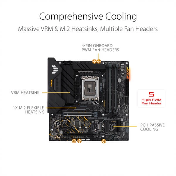 • Comprehensive cooling:Ā Enlarged VRM heatsink, Stack Cool 3 , Flexible M.2 heatsink, PCH heatsink, hybrid fan headers and Fan Xpert 2
