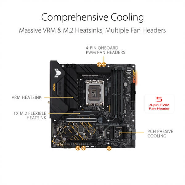 With upgraded power delivery and comprehensive cooling options to drive the 12th Gen Intel Core⢠processors, plus support for faster memory and storage, TUF GAMING B660M series motherboards are the perfect foundation for your next high-core-count battle rig.