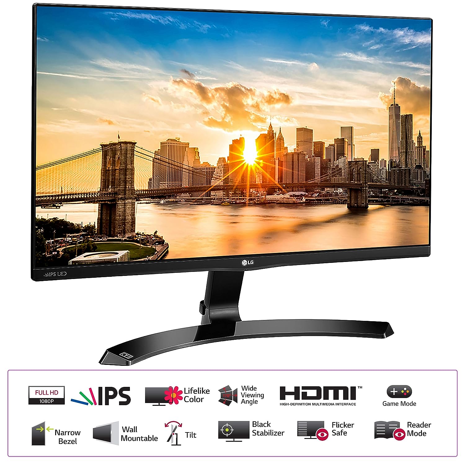LG 22 inch (55cm) IPS Monitor – Full HD, IPS Panel with VGA, HDMI, DVI, Audio Out Ports – 22MP68VQ, Black